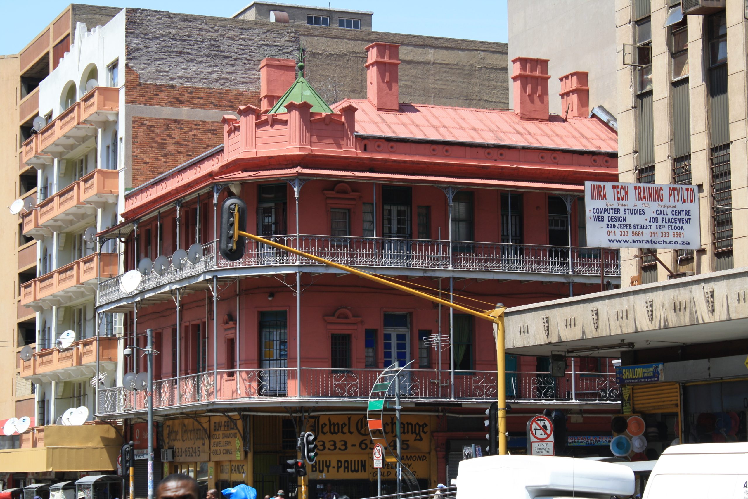 Johannesburg was a Victorian mining town. Pretty, but messy. It had corrugated iron buildings with ‘broekie-lace’ balconies. The city had a phone line system before it had a sewage system as it was more important to phone London and sell gold, or gold shares, than going to the loo. That, people simply did in the streets!