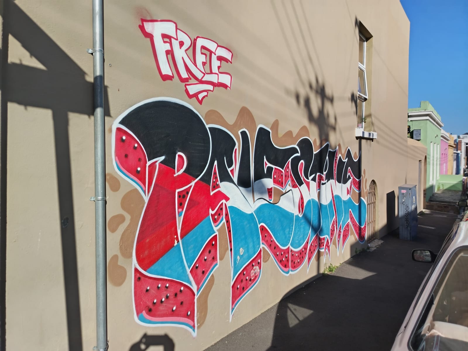 The Bo-Kaap is known for its solidarity with Palestine with lots of graffiti and street-art in support of Gaza.