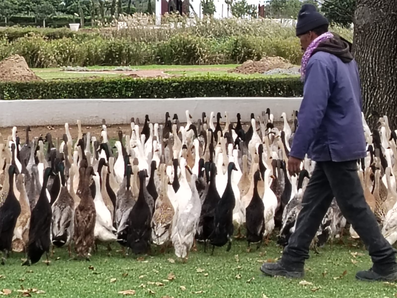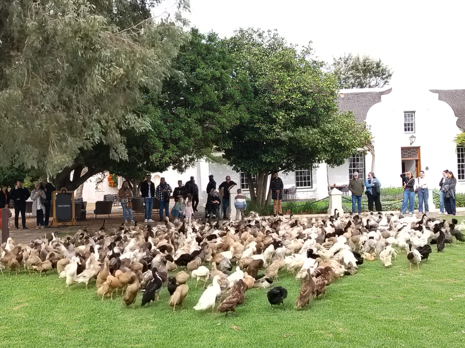 Duck parade on the homestead lawns at Vergenoegd Low.