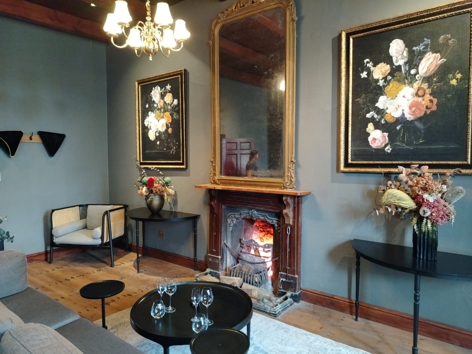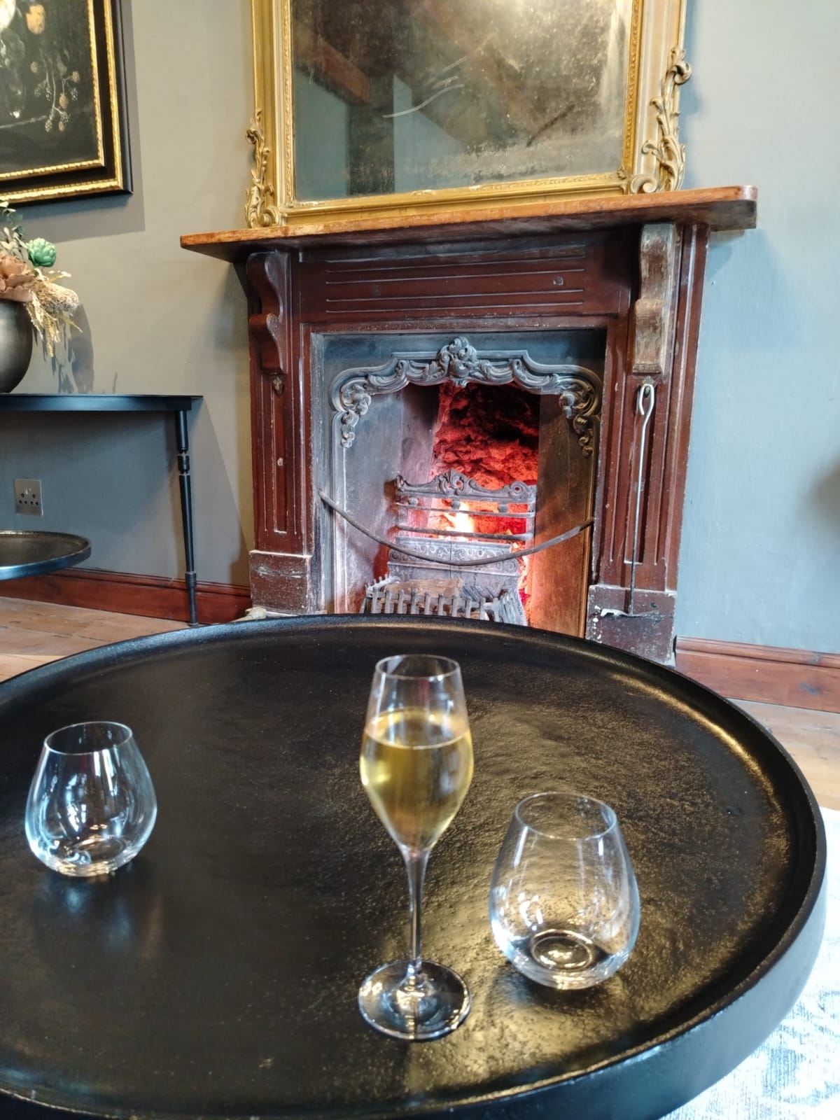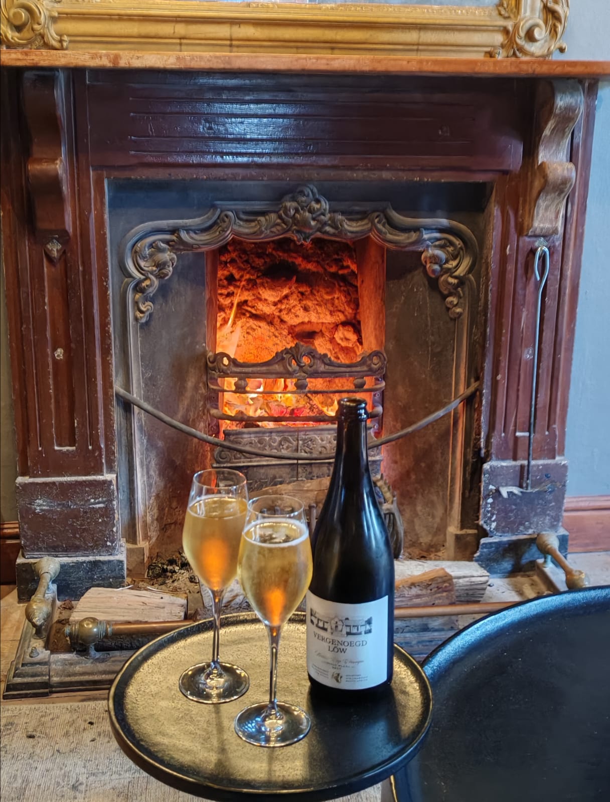 Fireplace wine tasting at the Vergenoegd Low homestead.